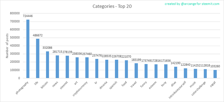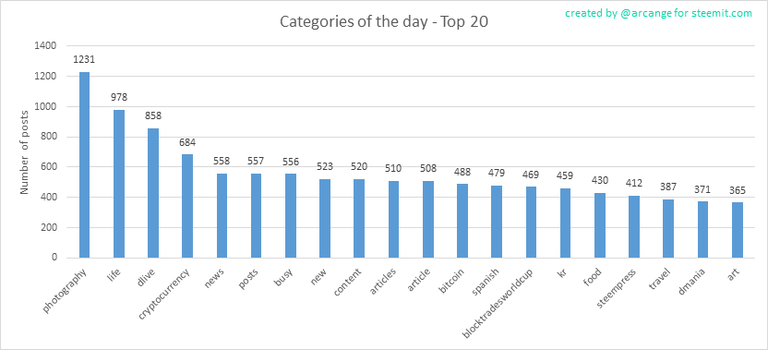 This graph shows the tag has been the most used for publishing posts for the whole blockchain lifetime.