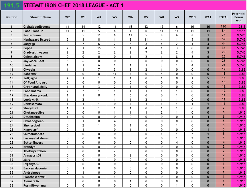 Now that we have entered the 15th round of the contest, in couple of days the first act of this season will be over! We've had 38 Steemians joining the contest at least once with a valid entry in this first act...