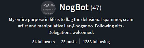 List of all @noganoo accounts: https://anotepad.com/notes/dpt43c (More than 600) Every user is being followed by @nogbot and some are following @nogalert. Every user upvoted the @noganoo posts