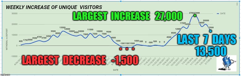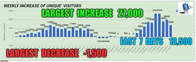 π The largest increase for Steemit unique visitors from week to week is 27,000
