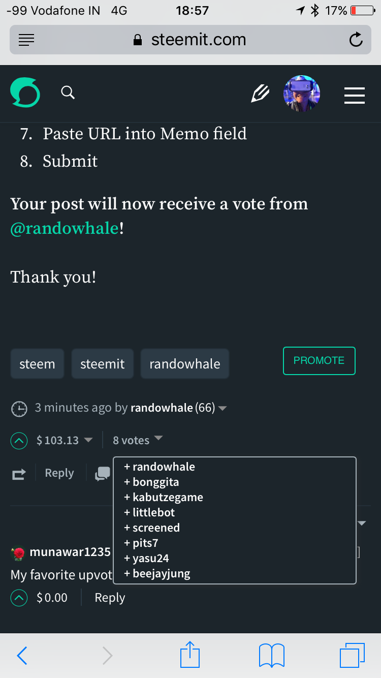 Because i also took upvote from @randowae but i didn't satisfy for randowhale