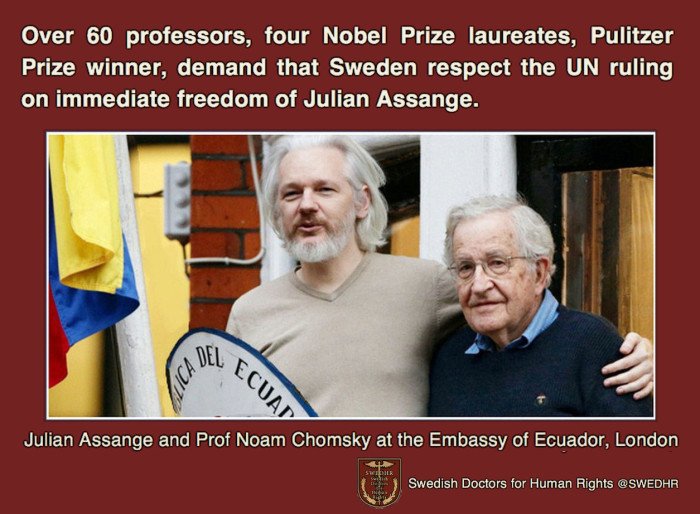 Over 60 professors, four Nobel Prize winners, demand Sweden to respect the UN ruling on Assange’s freedom