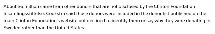 Who's giving undisclosed millions to the Clinton Foundation via its Sweden affiliate?