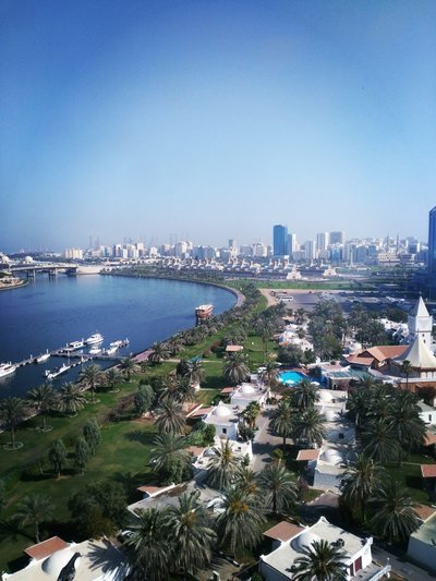 This was taken from 14th floor at Holiday International Hotel located in Buhaira Corniche, Sharjah UAE, during our church service.