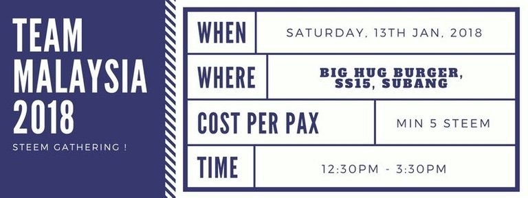 We would be organizing our first TeamMalaysia gathering ! Its only 5 Steem per pax for adults and free for children below 12. Any extra Steem collected would be used to powerup @myach account to be able to support all TeamMalaysia users in upvotes.