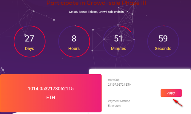 Then you must enter into the registration by clicking APPLY and you will be directed to the registration for purchase of EST tokens as shown below