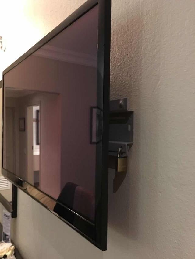 Four-star hotel TVs are hung with a lock, which is afraid of the TV also stolen.