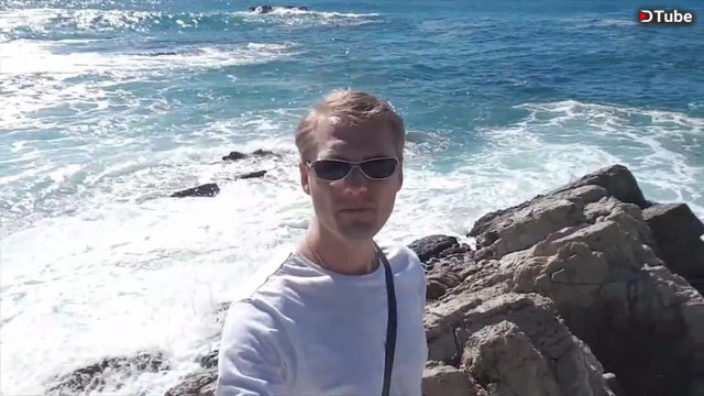 Walking around the coastline of Mediterranean Sea in the Sunny Honey Bunny Day - Easter Passover day April 1, 2018. Watching crashing waves on the shore - small and romatic french riviera beaches.
