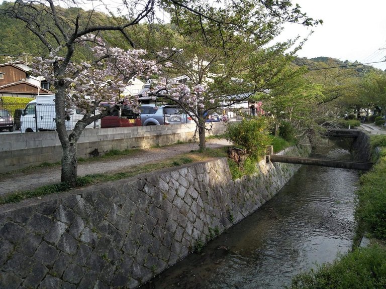 私たちが哲学の道を散策したのは去年の4月初旬でしたが、例年より桜の開花が早かったせいか、桜が散り始めていました。