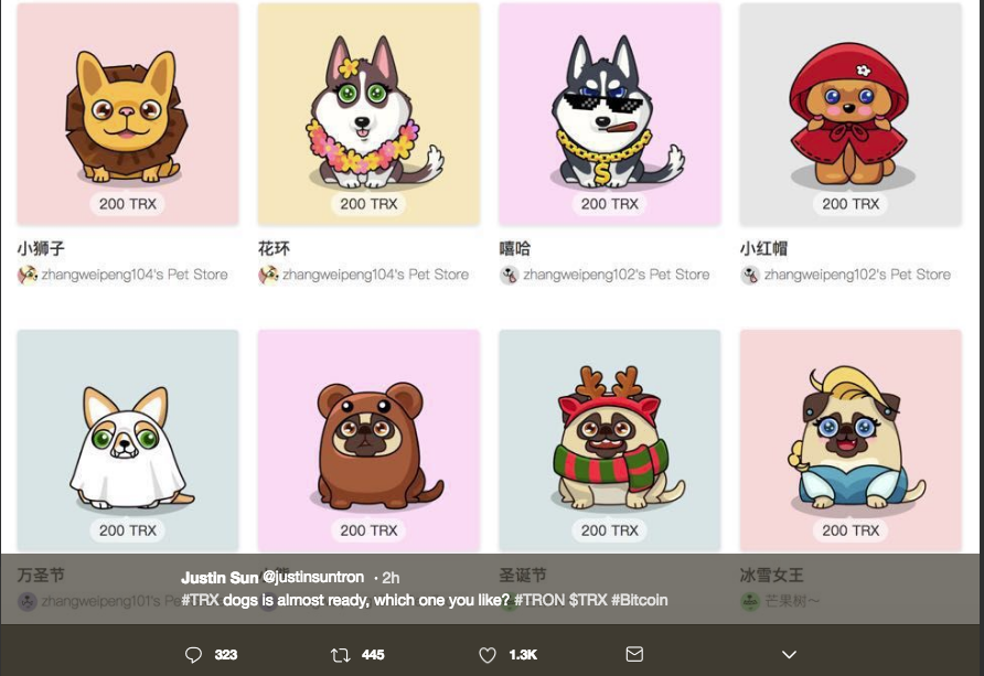 Ces chats virtuels vendus en ETH et qui fait un sacré carton sera donc copié. Des chiens virtuels seront semble t il vendus en TRX bientôt. L'engouement provoquera probablement des hausses des acquisitions du TRX...