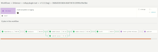 As usual, I use CircleCI for the automated build process. The CI workflow is based on webpack-defaults which I also use in binaryen-loader. The difference is I disable the test jobs for node6-latest and node8-canary (also add smoke-test for Stencil). For node8-canary, I disable it because there is no rollup@next or beta version yet.
