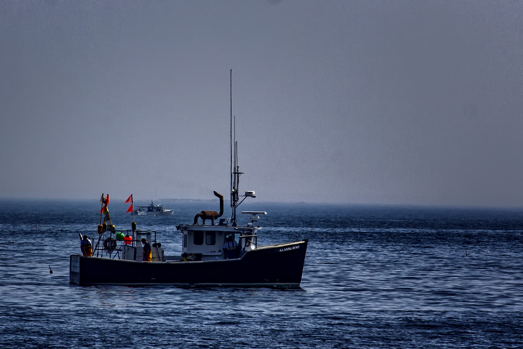 A lobsterman checks his traps along the New Hampshire coast. I took this photo at Odiorne State Park in Rye, New Hampshire.