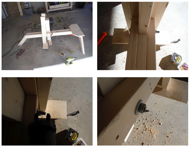 Then I aligned and screwed one of the 3 parallelogram legs to the "front" end of one of a side beam.